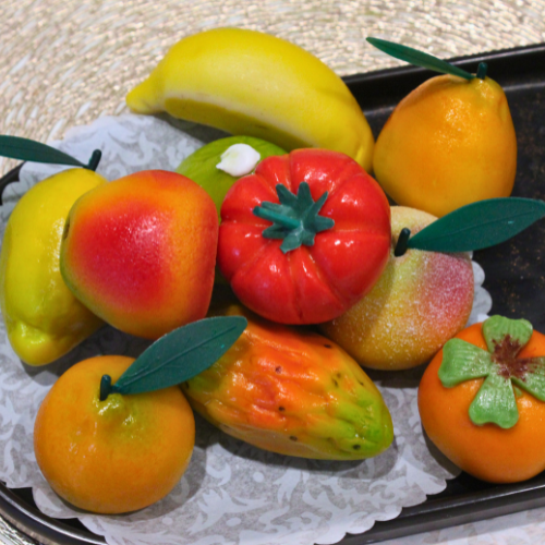 Simbolo della tradizione siciliana, la frutta martorana nasce da pasta reale di mandorla modellata e dipinta a mano.
